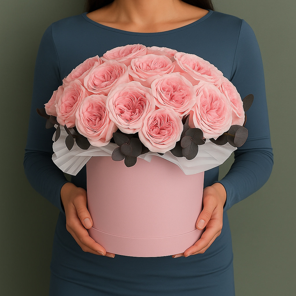 Элегантная композиция из нежных розовых садовых роз подчеркнёт изысканность и красоту момента. Идеальный подарок для юбилея, свадьбы или признания в чувствах.